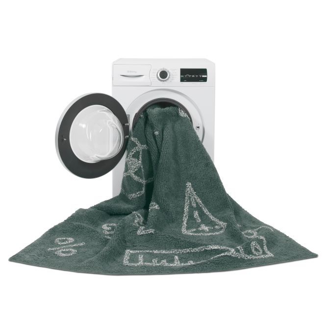 Koberec je vyrobený ze 100% bavlny a je možné prát jej v pračce (s kapacitou 9 kg). Při výrobě byla použita pouze přírodní barviva, a tak je koberec naprosto bezpečný. Díky použitému materiálu je koberec lehký, velmi měkký a snadno se s ním manipuluje.
