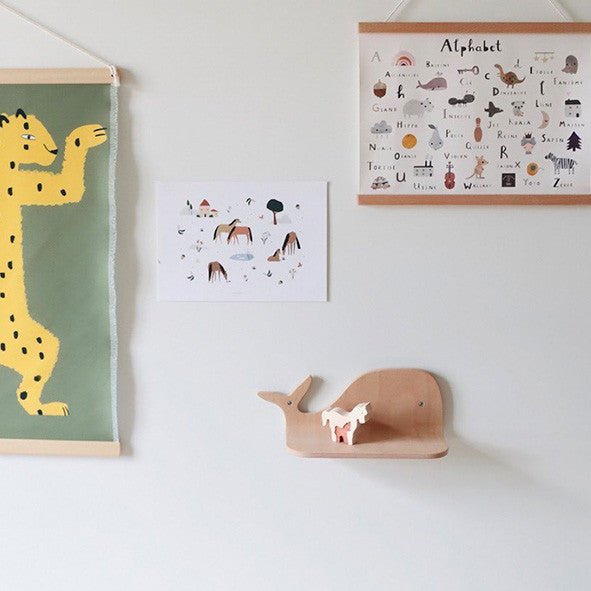 Dřevěné poličky Charlie Crane Paris Popi jsou krásným doplňkem dětského pokojíčku a ideální pro vystavení oblíbených drobností. Celkem je máme ve čtyřech různých tvarech - velryba, hory, domeček a obláček.