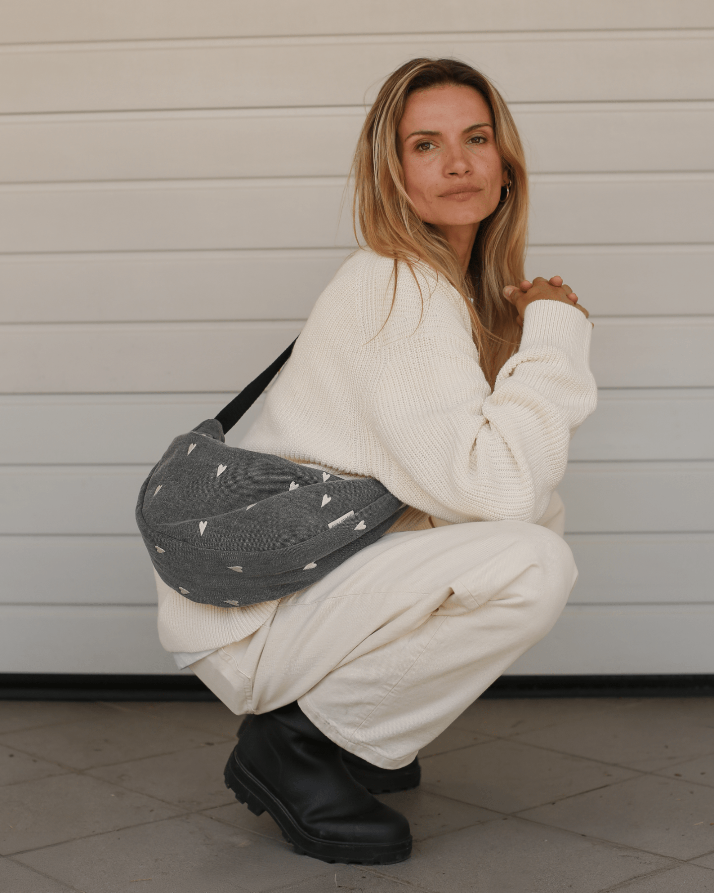Crossbody ledvinka STUDIO NOOS Grey Denim Hearts