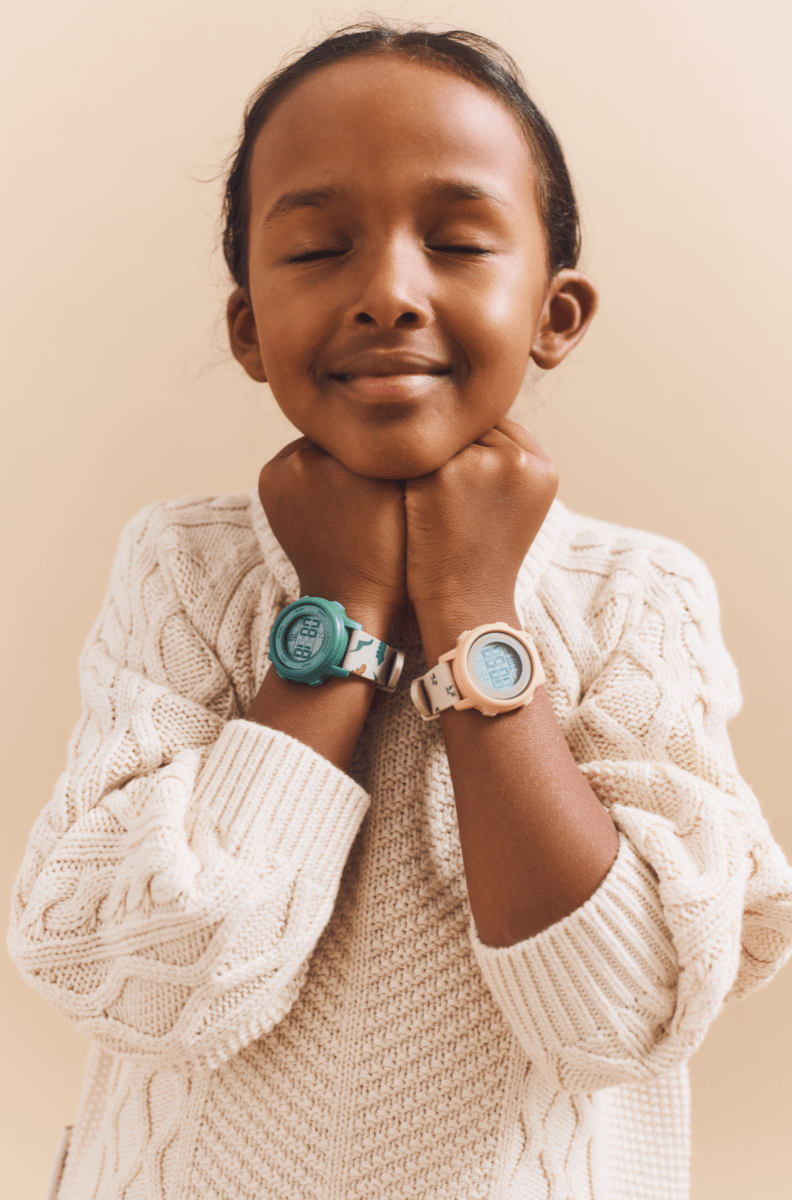 Digitální náramkové hodinky pro děti od 4 let. Voděodolné, funkce alarmu a stopek, formát času 12/24 h, barevné podsvícení displeje, nastavitelný silikonový pásek.