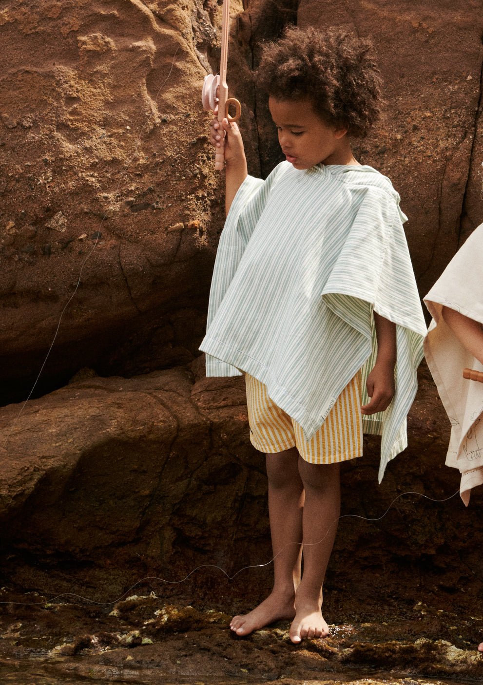 Stylové pončo oceníte na pláži i u bazénu, kde se do něj děti po koupání zabalí a usuší se. Hammam pončo Liewood je příjemné a lehoučké. Vyrobeno je z organické bavlny a má kapuci.