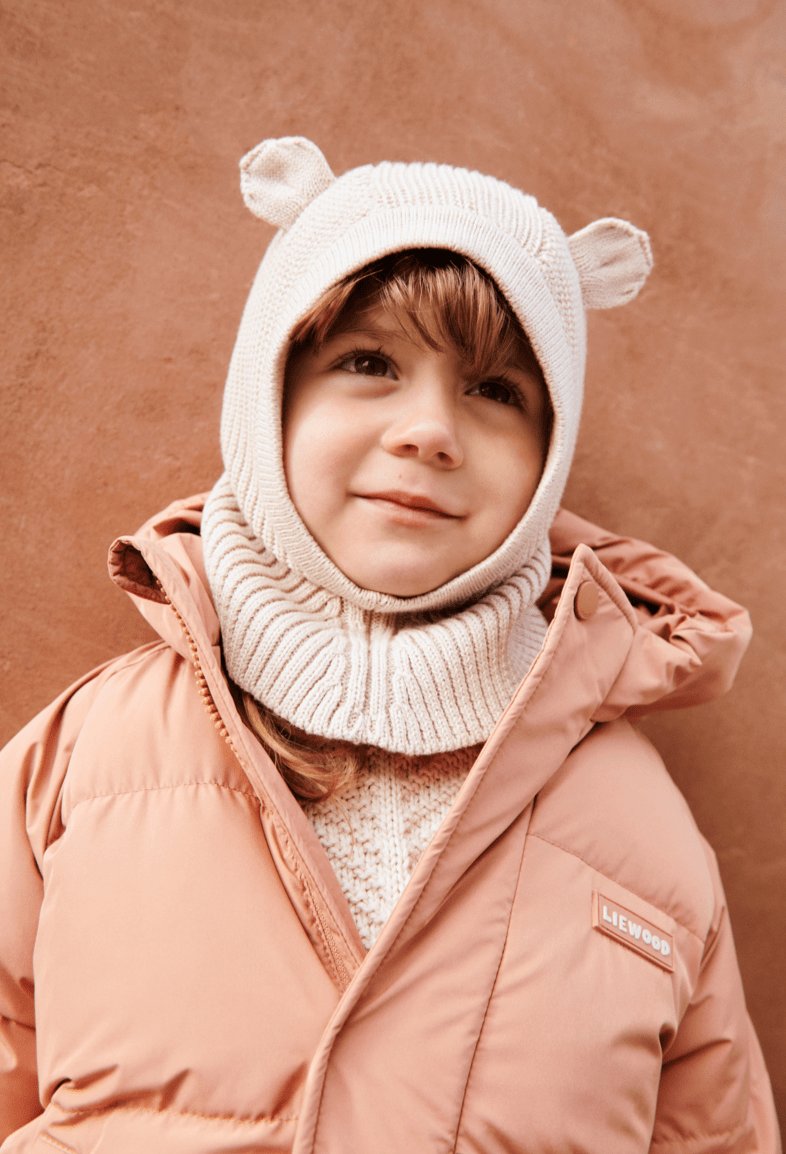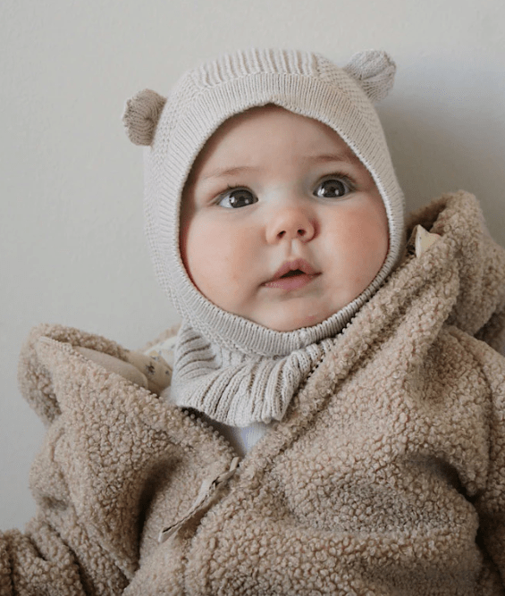 Díky pletené kukle zůstanou hlavička i krk dětí v teple. Z měkké a příjemné 100% organické bavlny. S žebrováním kolem obličeje a krku pro co nejpohodlnější nošení. S roztomilými medvědími oušky.