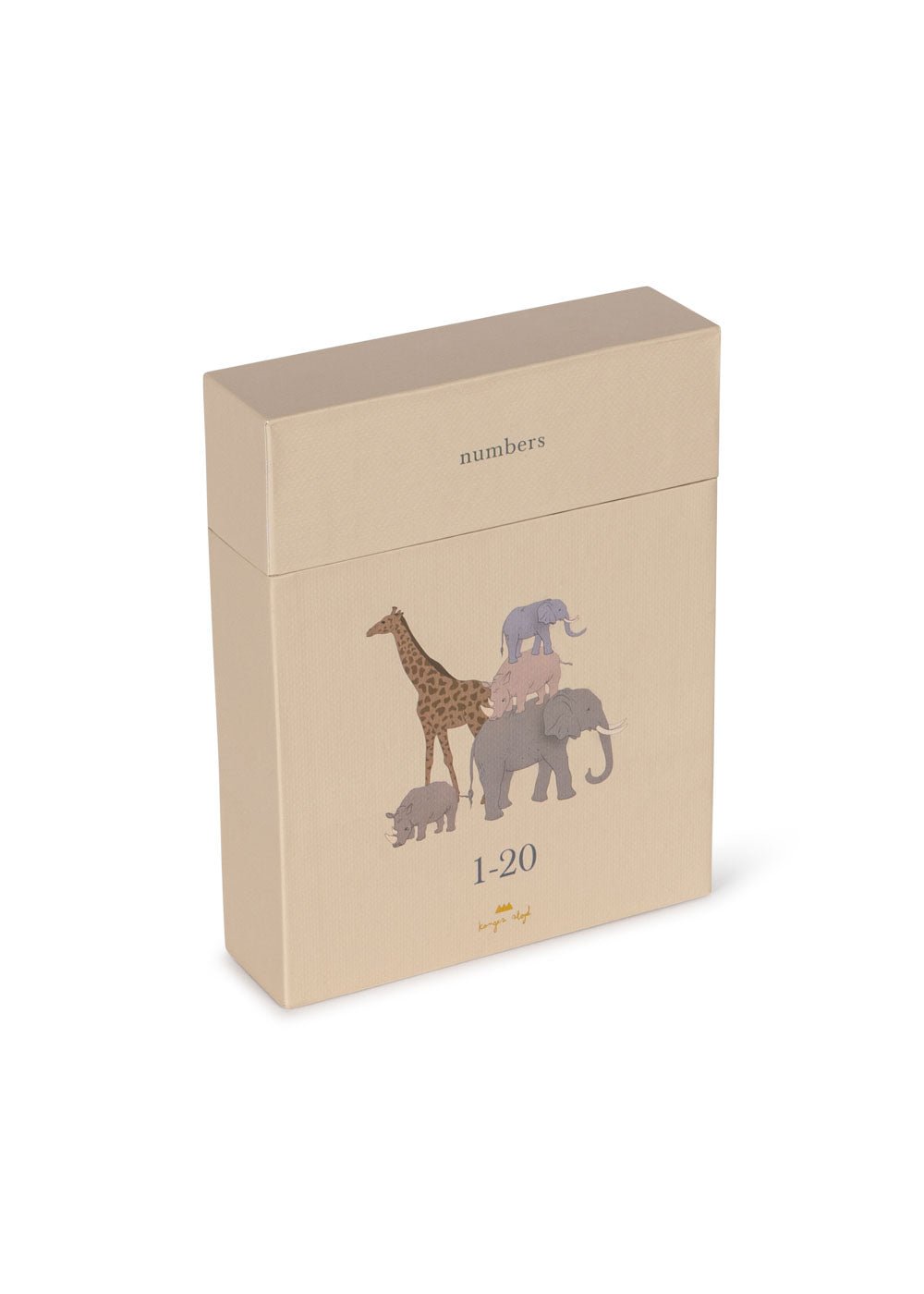 Jak se naučit čísla zábavně? S kartičkami Konges Slojd s čísly 1 - 20 na jedné straně a odpovídajícím počtem vyobrazených motivů na straně druhé.