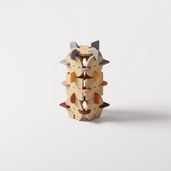 BAVVIC Dreamer Set tvoří 64 dílů: 28 dřevěných + 36 spojovacích. Kreativitě se meze nekladou, možností je nekonečně.