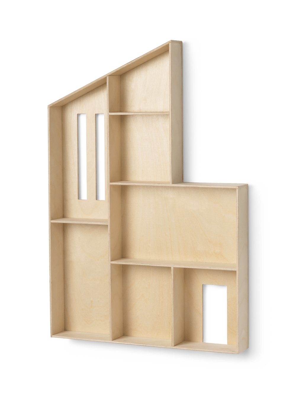 Nová polička ferm LIVING, jejímž předobrazem se stal ikonický domeček Funkis House. Tato vysoká štíhlá verze domu Funkis se snadno připevní ke zdi a vašemu dítěti vytvoří okouzlující místo pro uložení jeho oblíbených pokladů a hraček. Jednoduché linie a modernistický vzhled této stylové police si zamilují děti i dospělí.
