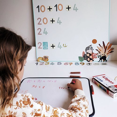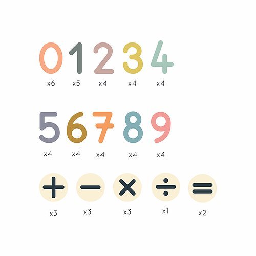 Sada obsahuje 52 magnetických číslic a matematických znamének plus, mínus, krát, děleno, rovná se, s nimiž se počítání a učení stane hrou. Díky větší velikosti se magnety snadno berou do ruky, různé barvy pomáhají si číslice lépe zapamatovat.