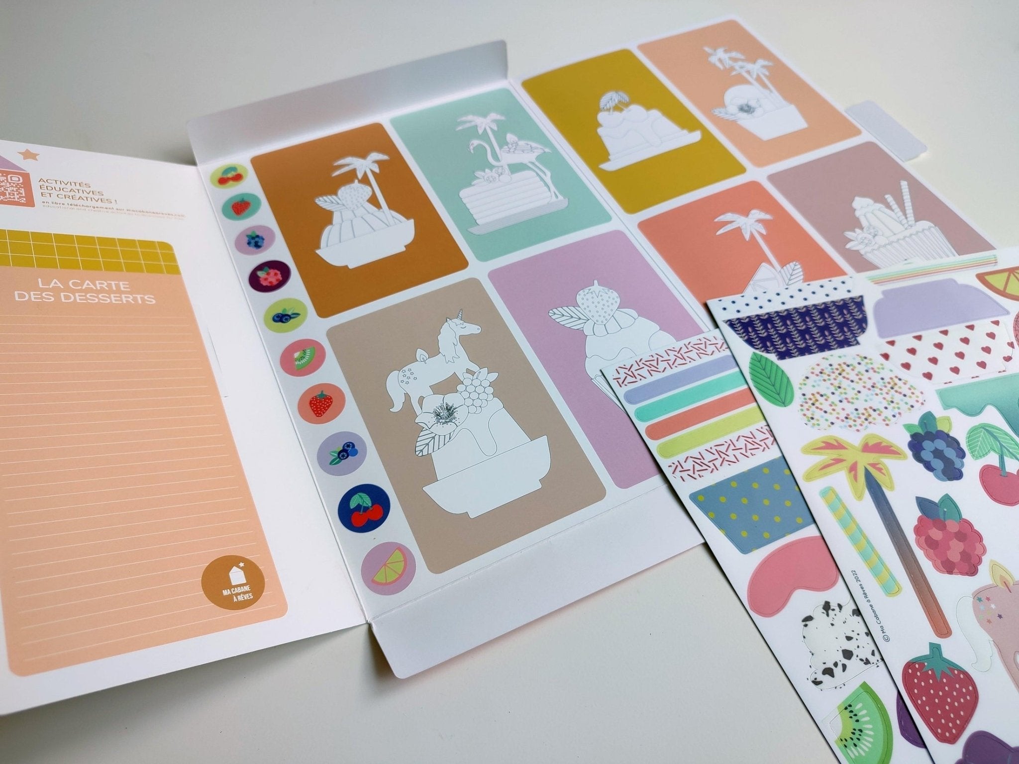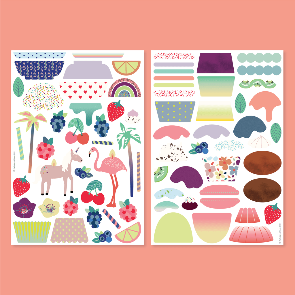 Sada obsahuje 74 magnetických obrázků + 8 kartiček k vybarvování + 1 dezertní menu k vyplnění + 10 tutti frutti tokenů. Vytvořte si vlastní cukrárnu a obměňujte lákavé menu. Magnety jsou tenké, pro více variací se dají vrstvit.