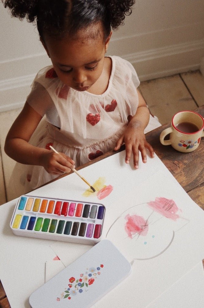 24 vodových barev se štětcem v kovové krabičce, kterou můžete dále využívat.