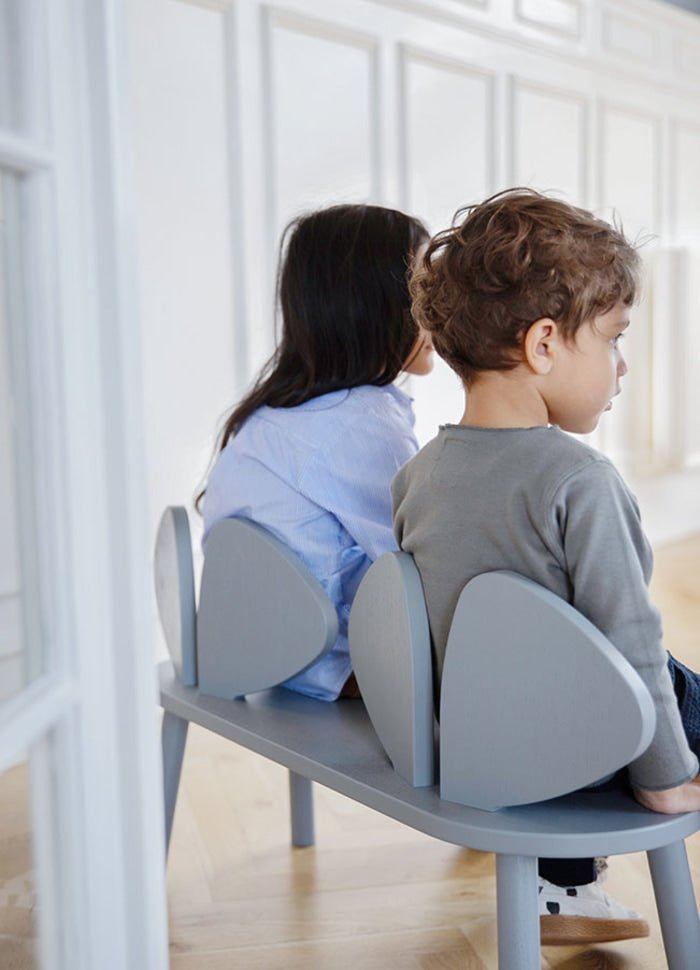 Lavička Mouse - nejnovější člen "myší" rodiny Nofred. Ideální na chodbu, do haly i dětského pokoje. Dlouhé sedátko se dvěma opěrátky ve tvaru myších uších je jako stvořené pro zouvání bot, šeptání tajemství nebo skládání panenek do řady.
