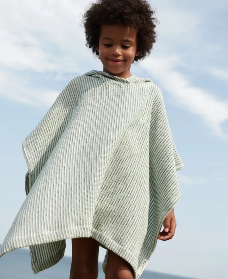 Stylové pončo s kapucí oceníte na pláži i u bazénu, kde se do něj děti po koupání zabalí a usuší se. Pončo Liewood je příjemné a lehoučké. Vyrobeno je z organické bavlny s "waflovou" strukturou, na předním dílu má výšivku.