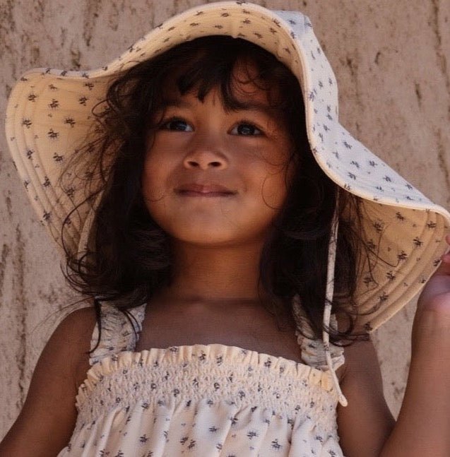 Letní klobouk se seersucker efektem s ochranným faktorem UV 50+. Z rychleschnoucí plavkoviny. S širokou krempou pro ještě lepší ochranu před přemírou slunečních paprsků a se šňůrkami na zavazování, aby dobře držel.