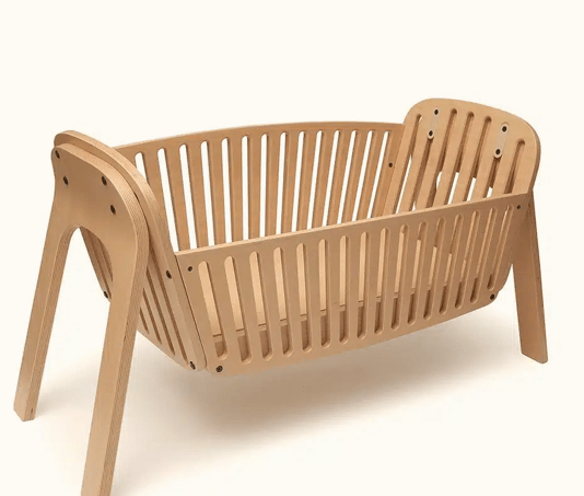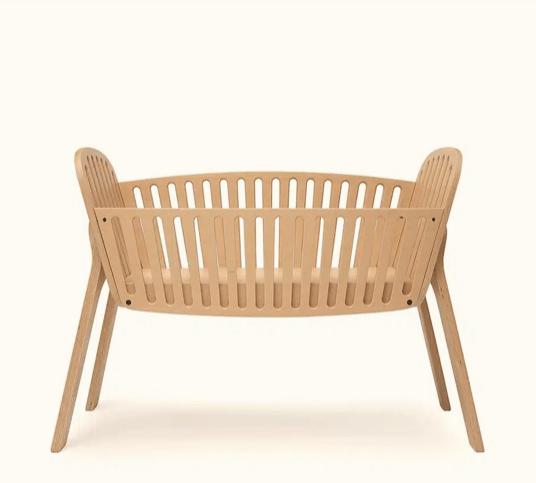 Postýlka je navržena se zaoblenými organickými liniemi, představujícími květinu, která rozkvétá a otevírá se světu.