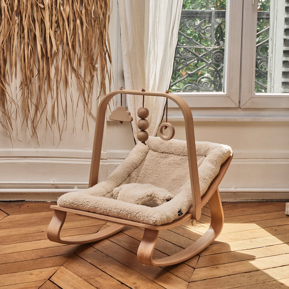 Speciální edice houpacího lehátka Charlie Crane s kožešinovým polštářem.