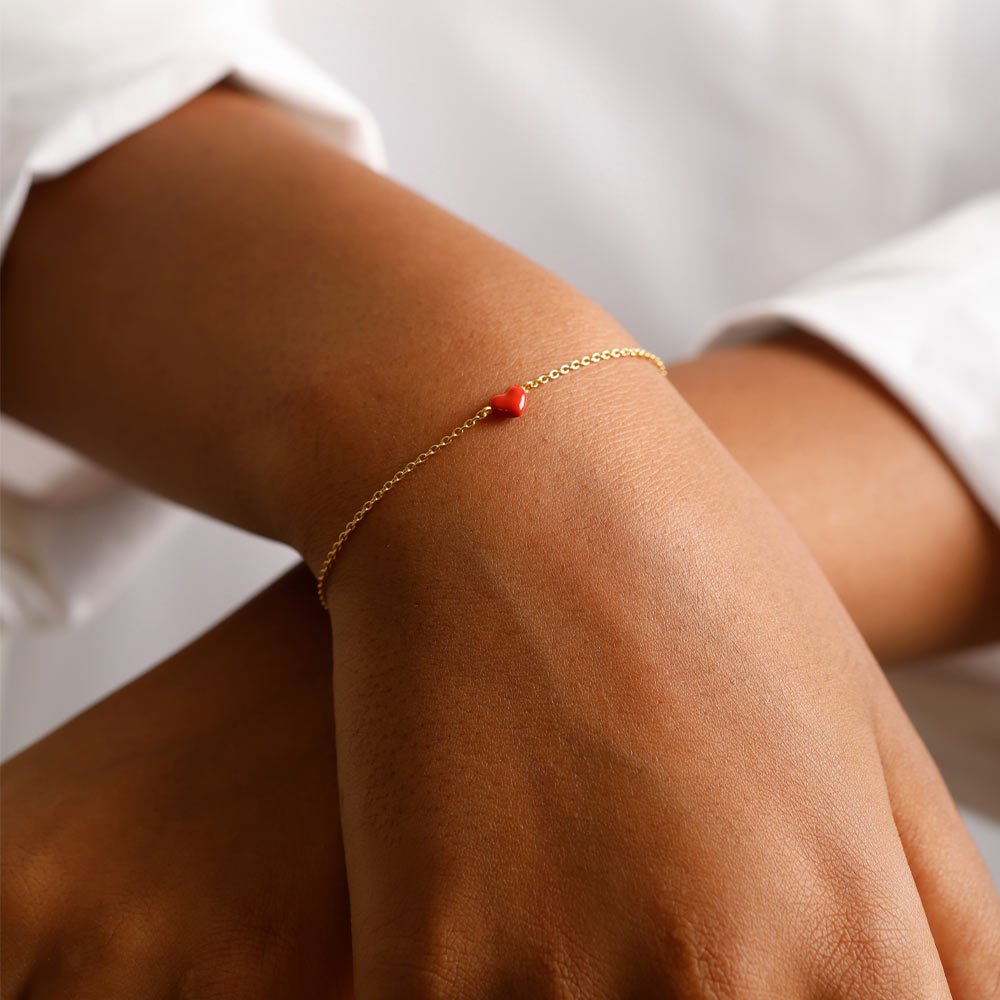 Krásný šperk s atraktivním detailem malého červeného srdíčka. Z kolekce Little Big Love. Velikostně nastavitelný - zapínání ve třech délkách. Ženský, působivý sám o sobě, nebo ještě osobnější v kombinaci s přívěskem Design Letters s písmenem.