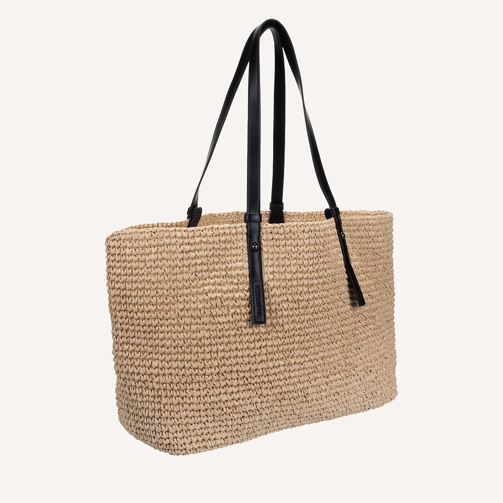 Elegantní taška na pláž, na trhy, v létě do města. Má obdélníkové dno a popruhy z umělé kůže. Ideální na den i neformální večer, doplní uvolněné i sofistikované outfity.