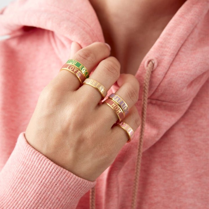 Řekněte to prstenem. Prsten z pozlaceného stříbra v kombinaci s barevným smaltem, v němž je napsáno, že jste "milujete" - LOVE. Krásný dárek k narození dítěte, k narozeninám i Valentýnu. Velikost prstenu je flexibilní 48 - 58.