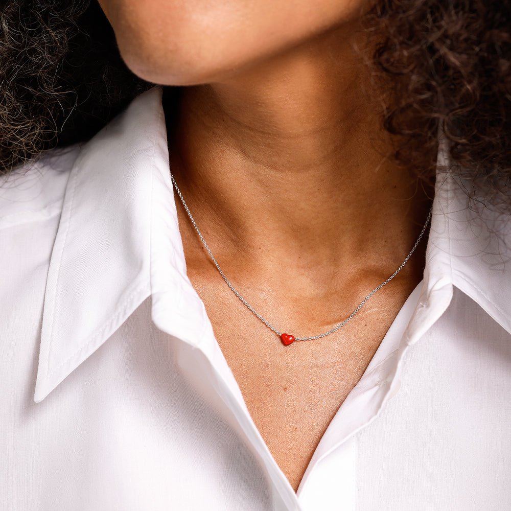 Krásný šperk s atraktivním detailem malého červeného srdíčka. Z kolekce Little Big Love. Ženský, působivý sám o sobě, nebo ještě osobnější v kombinaci s přívěskem Design Letters s písmenem.