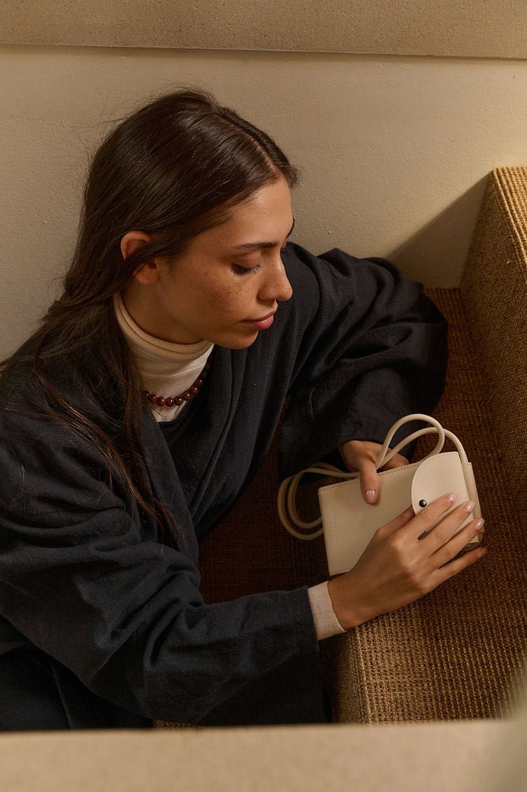 Stylová a praktická taštička na mobil s popruhem od značky Monk&Anna. Ze zadní strany kapsičky na karty.