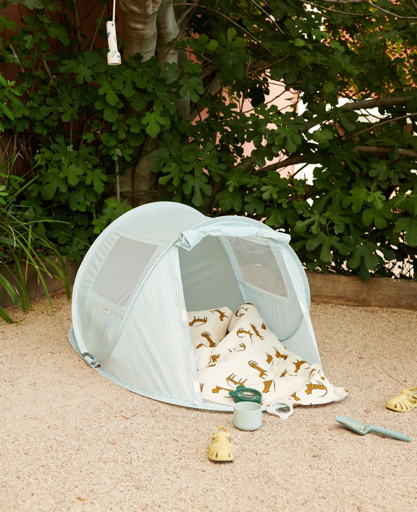 Získejte stinný prostor a čas na hru nebo odpočinek v lehkém, prodyšném stanu Liewood Bjork s UV ochranou 40. Stan se snadno skládá a přenáší, má síťovaná boční okna pro extra prodyšnost a velký přední otvor pro snadný přístup, který můžete uzavřít.