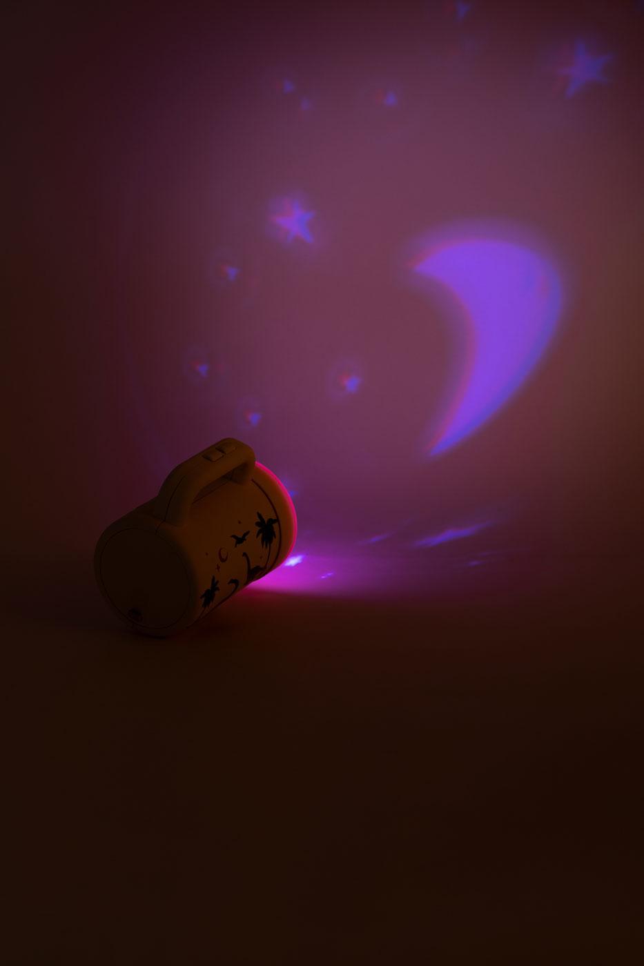 Velká svítilna pro děti, u které můžete měnit barvy světla. Má snímatelnou krytku s motivy hvězdiček a měsíce, díky níž můžete na zeď promítat tyto magické tvary. Svítilna má na rukojeti dvě tlačítka. Jedním ji zapnete / vypnete a mačkáním druhého měníte barvu světla. Skvělá hračka i praktická pomůcka. S USB dobíjením.