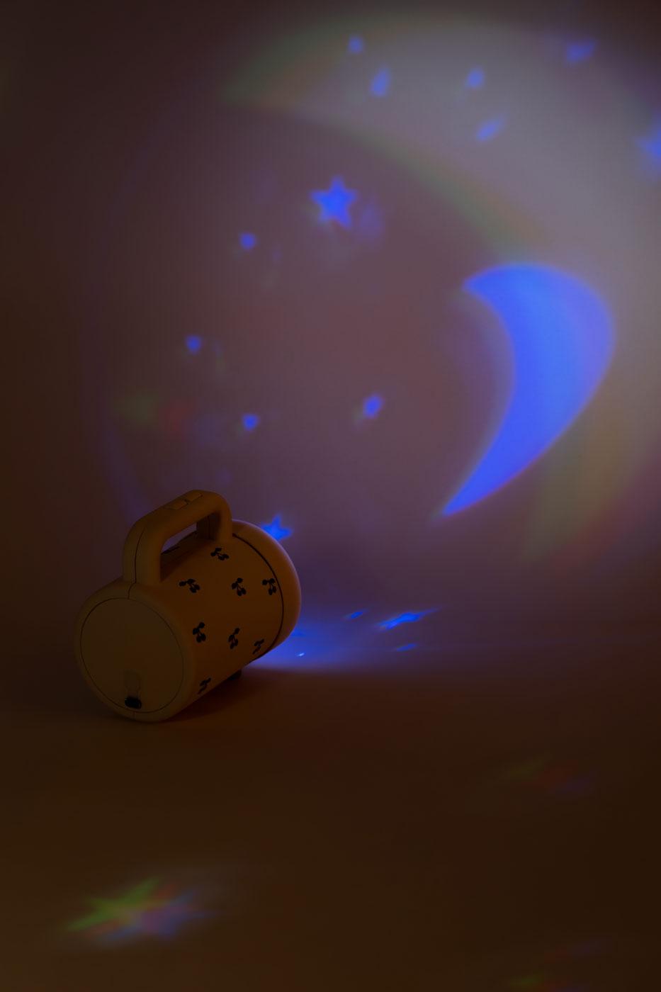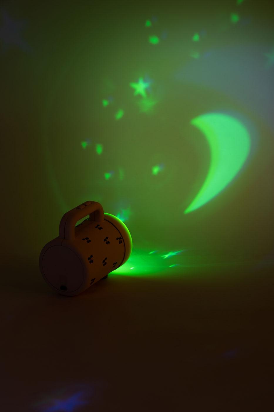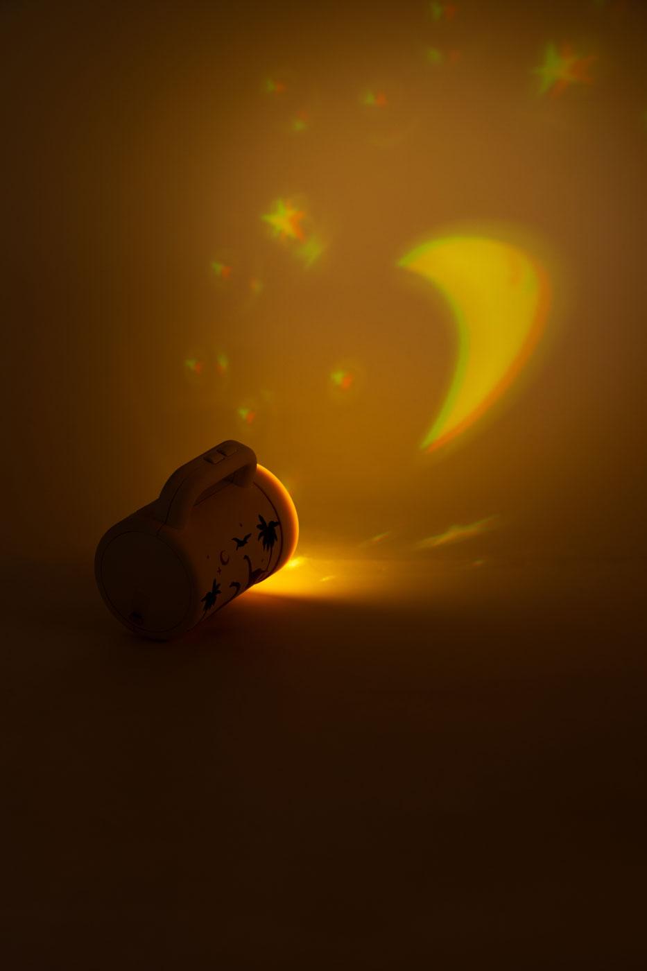 Velká svítilna pro děti, u které můžete měnit barvy světla. Má snímatelnou krytku s motivy hvězdiček a měsíce, díky níž můžete na zeď promítat tyto magické tvary. Svítilna má na rukojeti dvě tlačítka. Jedním ji zapnete / vypnete a mačkáním druhého měníte barvu světla. Skvělá hračka i praktická pomůcka. S USB dobíjením.