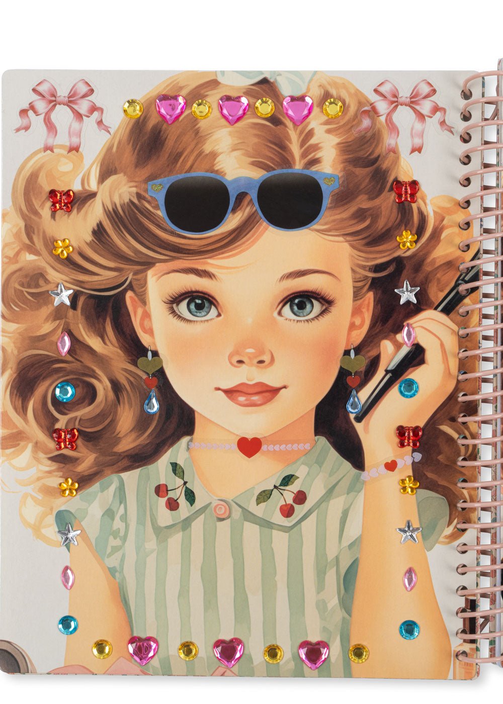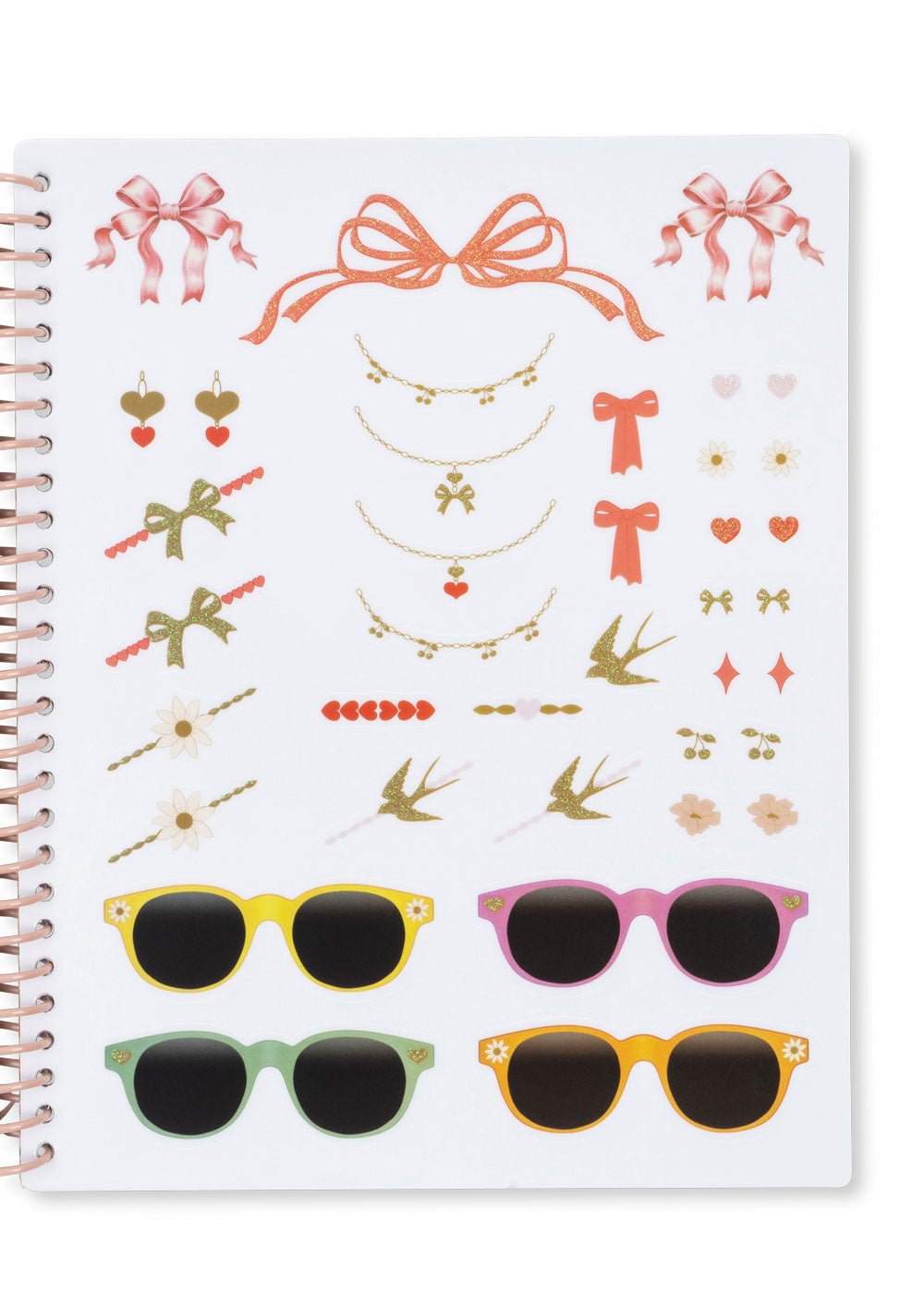 Knížka s portréty na dotvoření pomocí nalepovacích řas, stínů, obočí, nalíčených rtů, slunečních brýlí a také drahokamů a samolepek, které se dají používat opakovaně. Zábavná hra pro vaši malou parádnici. Díky pevnému kartonu je knížka skvělá i s sebou na cestování nebo čekání, aby ukrátila čas.