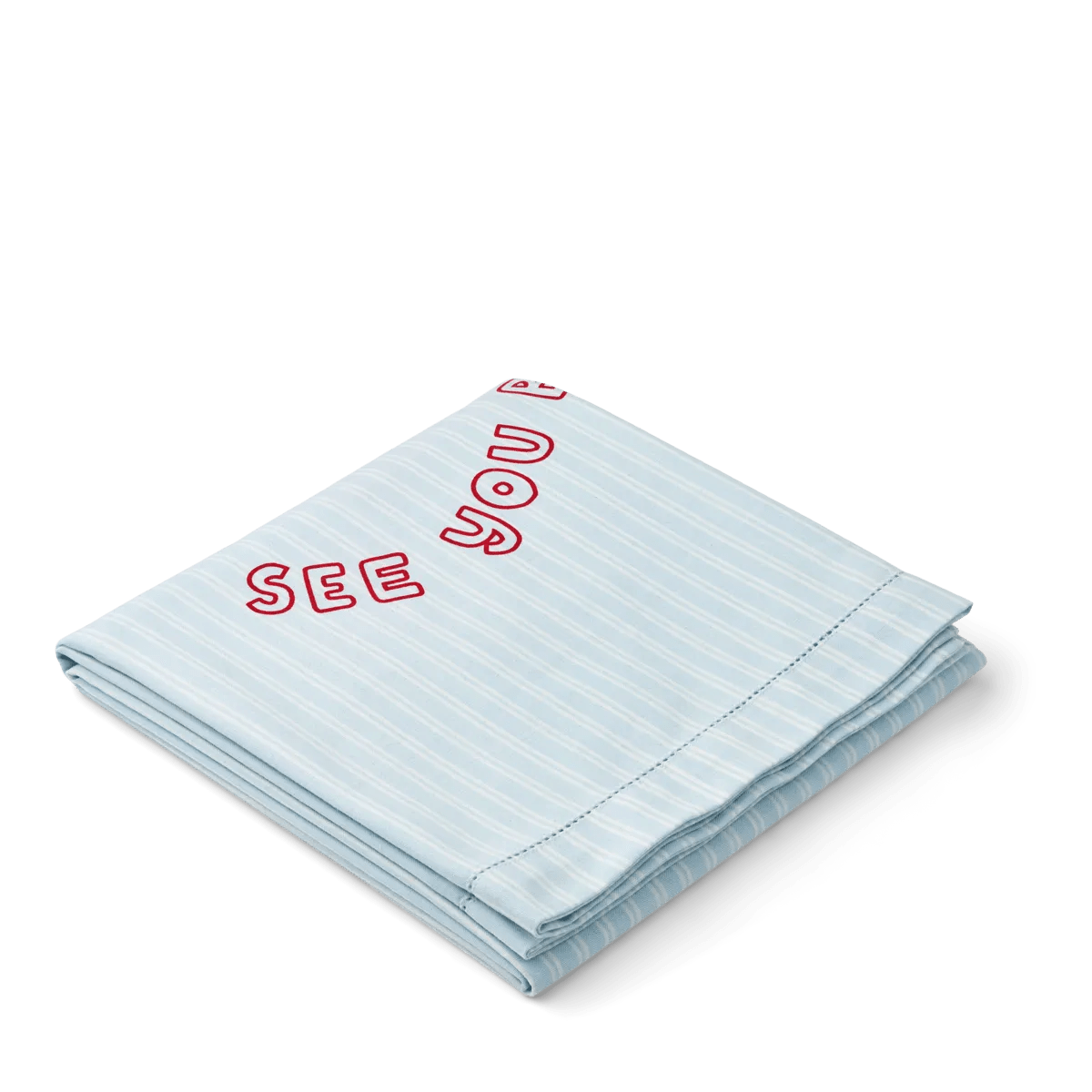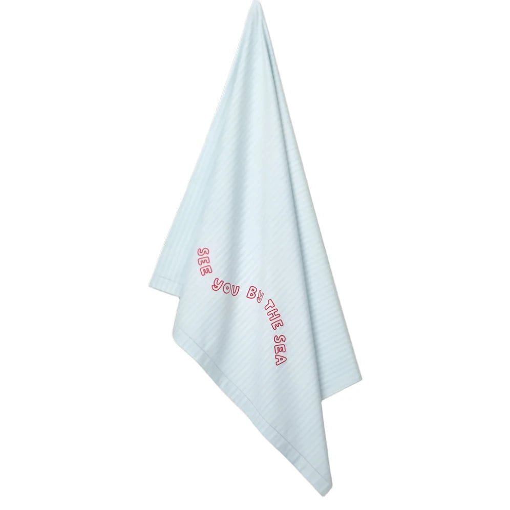 Příjemná plážová osuška Liewood Paige s nápisem "See You By the Sea". Ze 100% organické bavlny. Vezměte ji s sebou na pláž, k bazénu nebo klidně i do parku. Bavlněná osuška je skladná, nezabere téměř žádné místo a téměř nic neváží.
