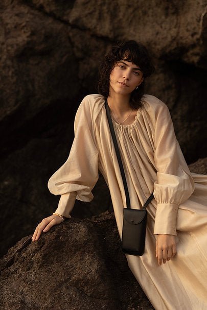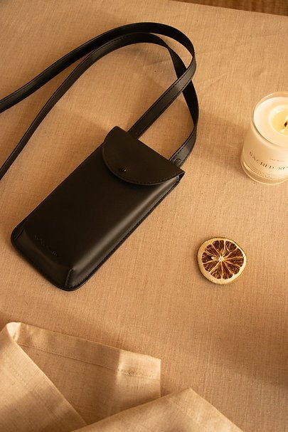 Stylová a praktická taštička na mobil s popruhem od značky Monk&Anna. Ze zadní strany kapsičky na karty.