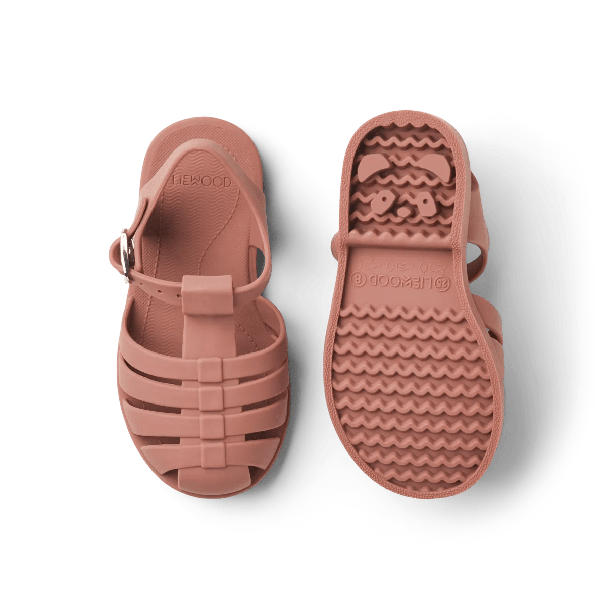 Gumové letní sandálky Liewood Bre jsou lehoučké, ohebné a velice pohodlné. Tím, že jsou vyrobeny ze 100% PVC, neabsorbují vodu a využijete je u moře nebo bazénu, hodí se ale i na běžné nošení. Na podrážce pod patou je roztomilý detail - obrázek pandy, která bude při chůzi zůstávat otištěná v písku - drobnost, kterou vaše děti jistě ocení :-).
