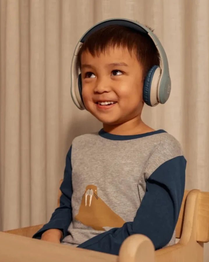 Bezdrátová sluchátka pro děti od tří let. Měkká výstelka na uších a hlavě pro pohodlné nošení. Nastavitelná velikost hlavového oblouku. Skládací design pro lepší skladnost, pokud nejsou používána. Zvukový limit 85dB chránící sluch dětí. USB dobíjení.