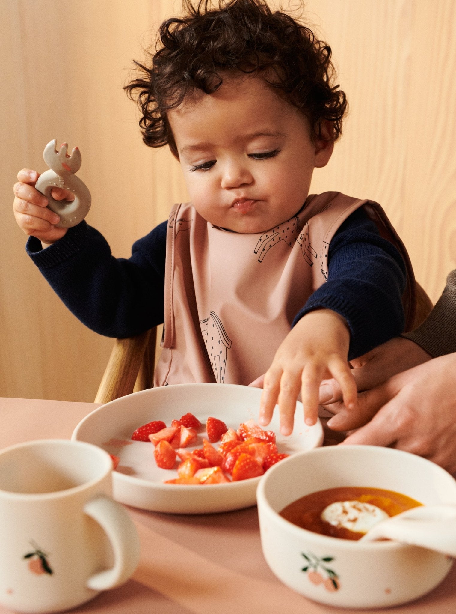 Praktický, nepromokavý bryndák, který je lehoučký, pohodlný a dobře sedí. Střihem navazuje na oblíbený bryndák Liewood Merle, ale je bez rukávů. Neprosakuje a má kapsičku, která zachytává padající jídlo. Údržba je snadná, většinou stačí bryndák otřít, nebo ho můžete vyprat v pračce.