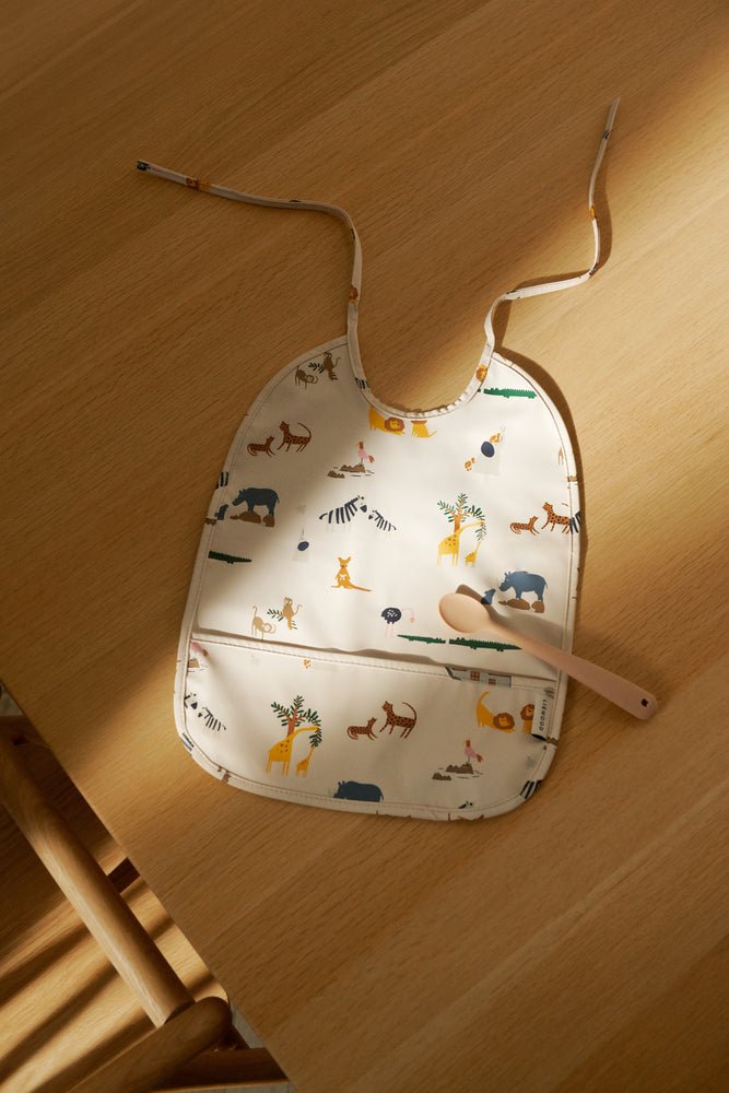 Praktický, nepromokavý bryndák, který je lehoučký, pohodlný a dobře sedí. Uvazuje se na šňůrku za krkem. Bryndák neprosakuje a má kapsičku, která zachytává padající jídlo. Špinavý bryndák můžete otřít, nebo vyprat v pračce.