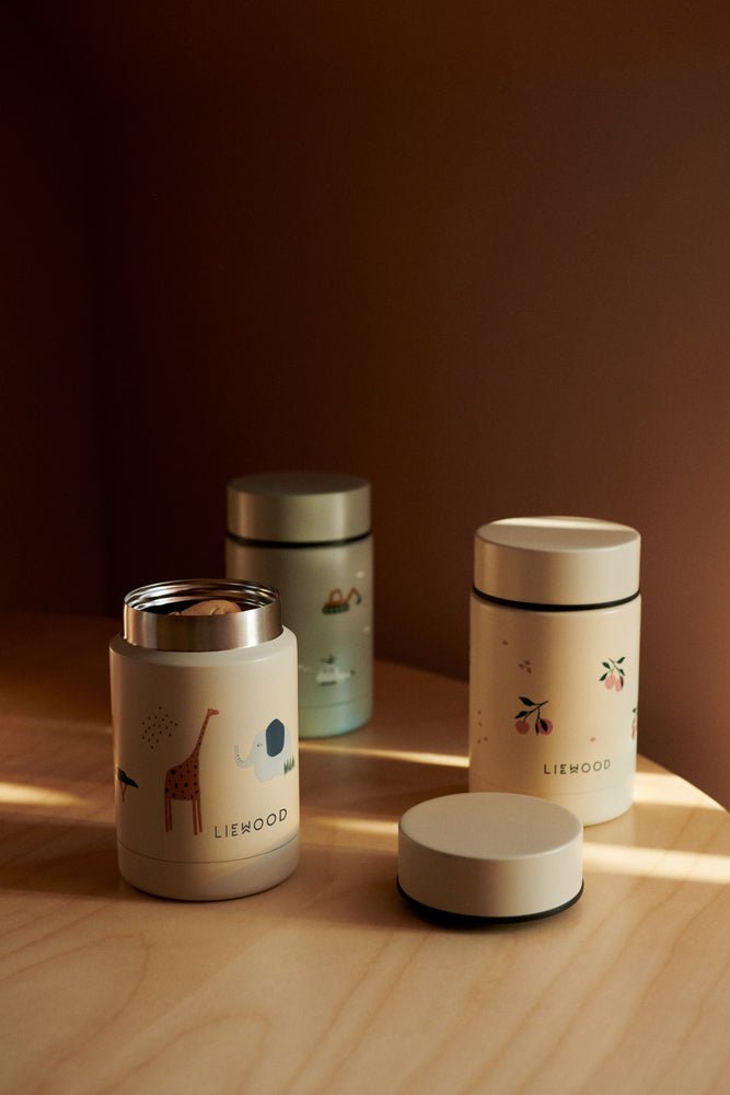 Krásná a praktická termo-dóza na jídlo z nerezové oceli. Dóza má dvojitou ocelovou stěnu, která udrží teplotu teplého jídla až šest hodin a chladného jídla až osm hodin. Pokud tedy trávíte dny venku s jídlem připraveným z domova, je pro vás termo-dóza Liewood správnou volbou.
