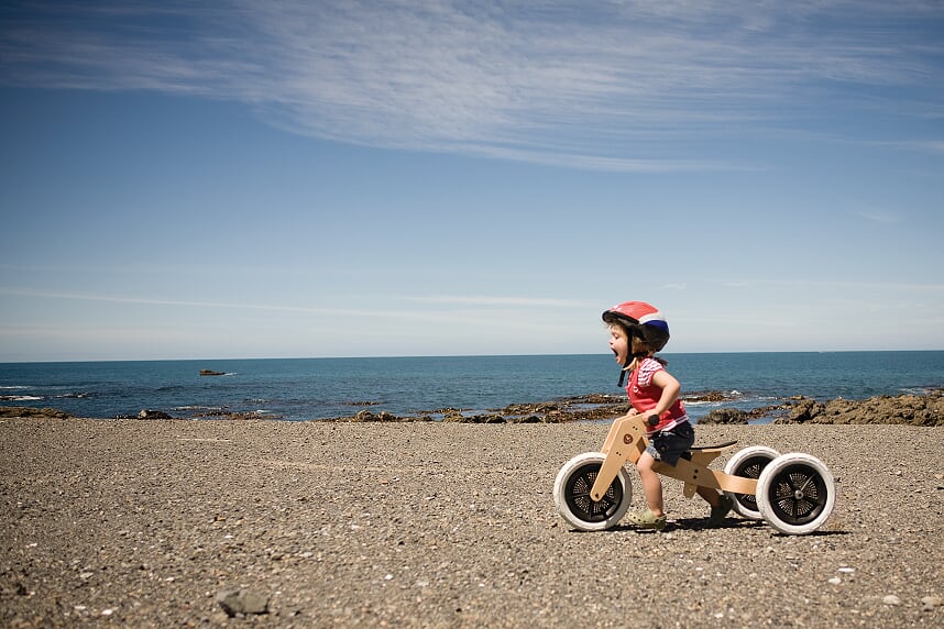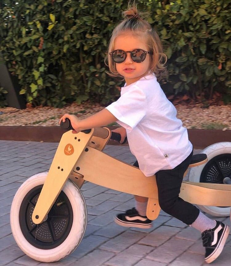 2. Poté Wishbone přestavíte na odrážedlo se dvěma koly, na kterém se dítě naučí držet rovnováhu.