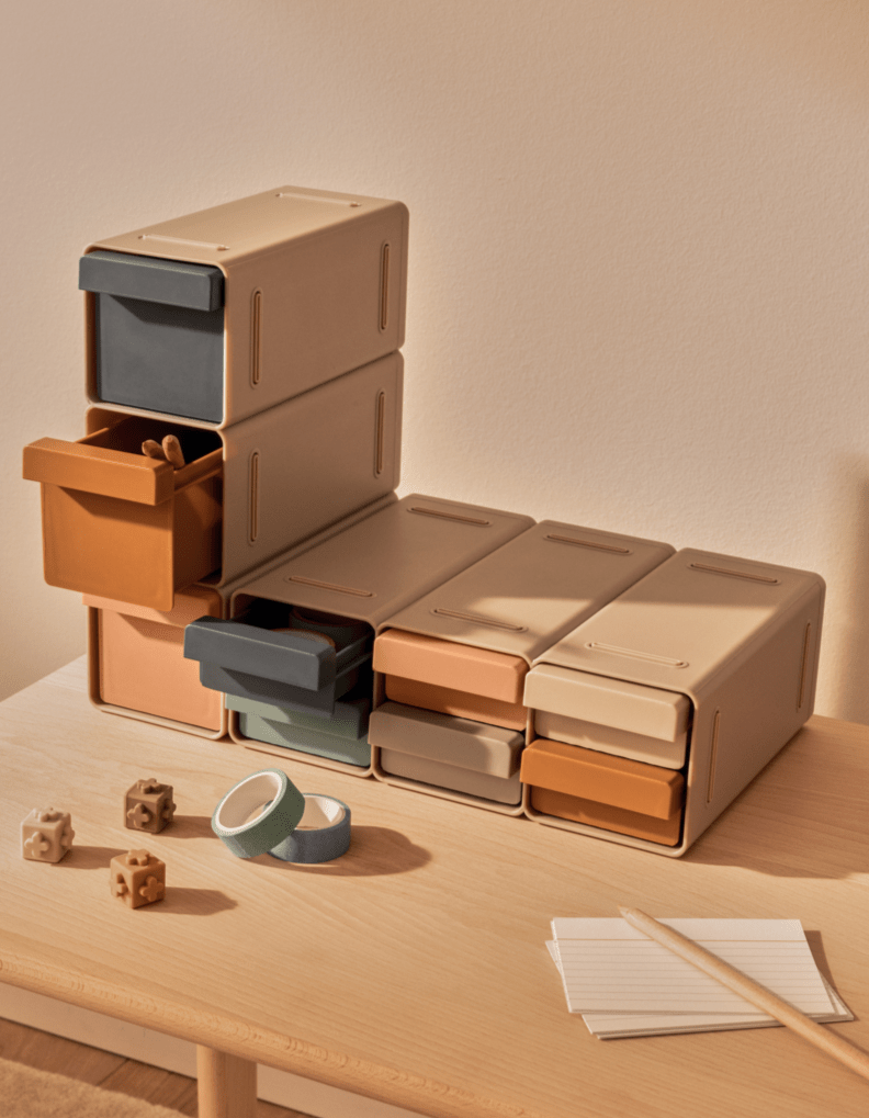 Variabilní organizér s různými možnostmi uspořádání. Zásuvné boxíky můžete umístit horizontálně i vertikálně. Jednoduchý propojovací systém umožňuje organizér stavět a rozšiřovat. Perfektní a praktický doplněk na dětský psací stůl nebo poličku. Ideální na psací a kreslicí potřeby, drobnosti, ale i malé hračky, sponky apod. Organizér Kylian je svým jednoduchým, nadčasovým designem vhodný i pro větší děti a dospělé.