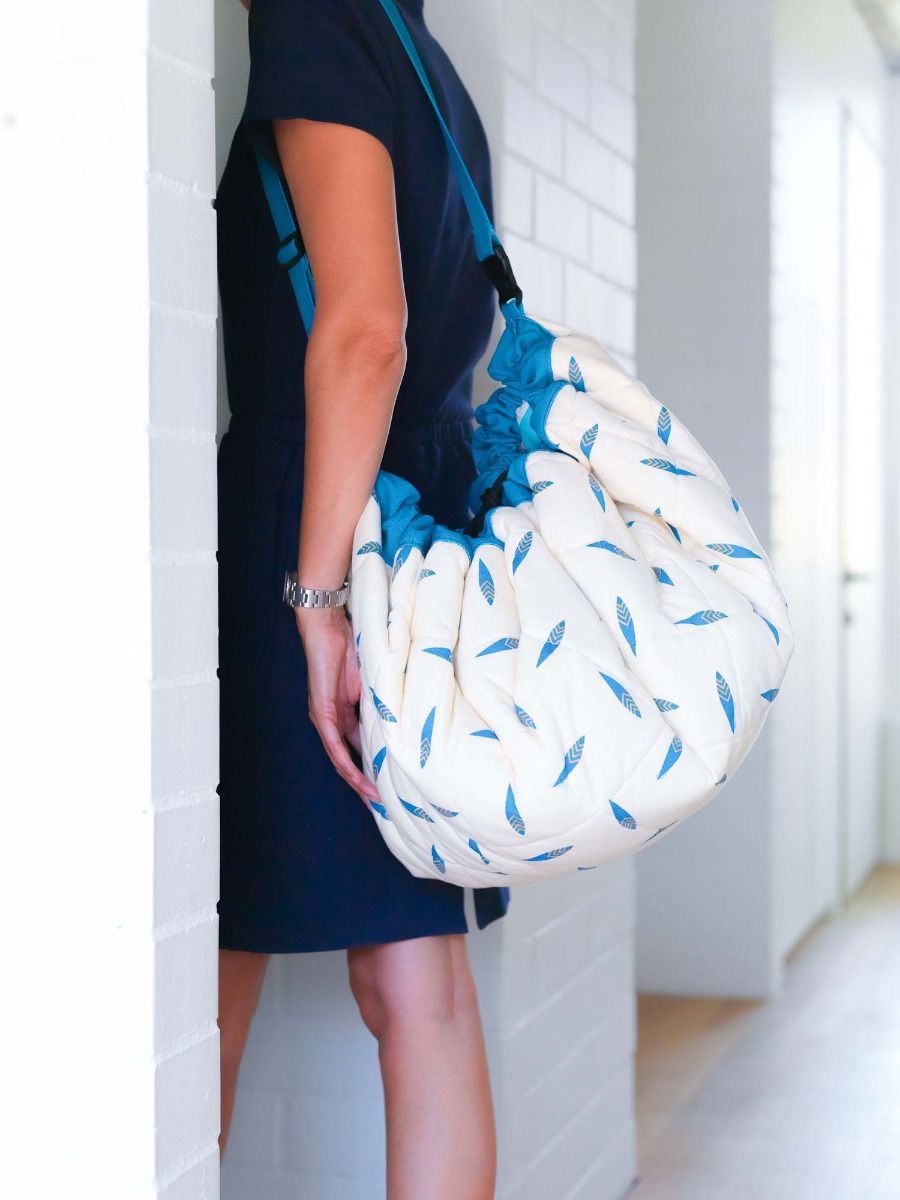 Vak je vybaven speciálním popruhem, díky němuž podložku staženou do vaku zavěsíte na rukojeť kočárku, nebo ji přehodíte přes rameno. Podložku PLAY&GO tak snadno můžete vzít s sebou a můžete ji využít třeba i jako přebalovací tašku. Tomu je přizpůsoben design podložek - z jedné strany jsou potištěny dětskými motivy, z druhé mají univerzální design vhodný pro dospělé.