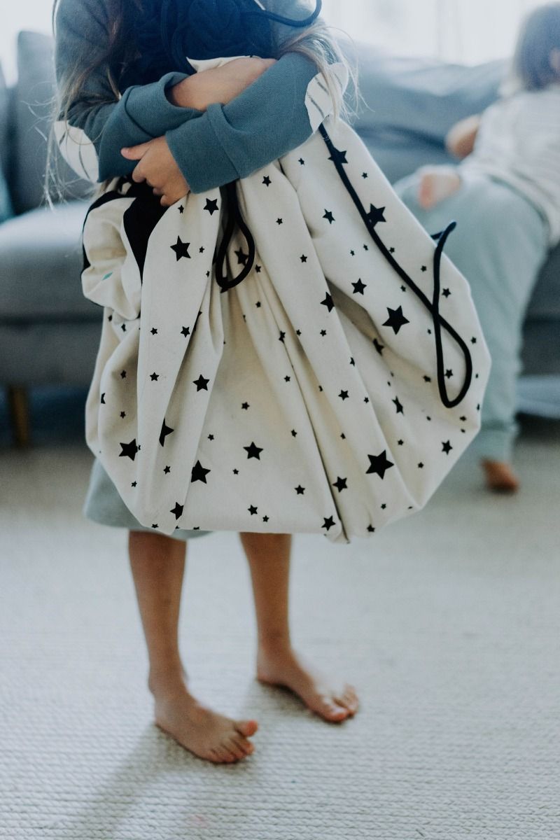 Znáte to? Hračky na zemi, pod postelí i pod stolem? Máme řešení! Úložný vak Play&Go je praktický a navíc je s ním zábava! Slouží jako hrací podložka a zároveň jako úložiště hraček. Rozložený měří v průměru 140 cm, takže je dostatečně velký. Po stažení se dá snadno přenášet.