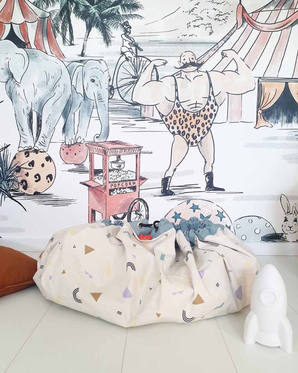 Znáte to? Hračky na zemi, pod postelí i pod stolem? Máme řešení! Úložný vak Play&Go je praktický a navíc je s ním zábava! Slouží jako hrací podložka a zároveň jako úložiště hraček. Rozložený měří v průměru 140 cm, takže je dostatečně velký. Po stažení se dá snadno přenášet.