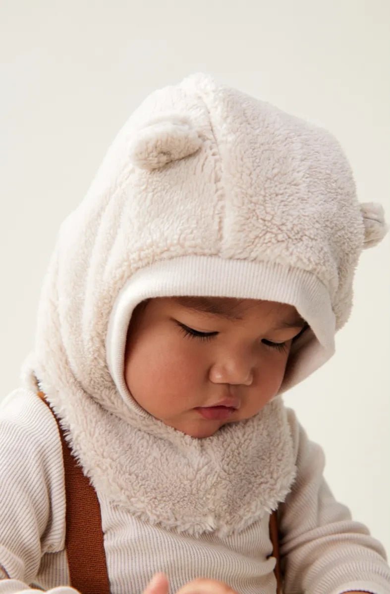 Díky měkoučké kukle zůstanou hlavička i krk dětí v teple. S žebrováním kolem obličeje a krku pro co nejpohodlnější nošení. S roztomilými medvědími oušky.
