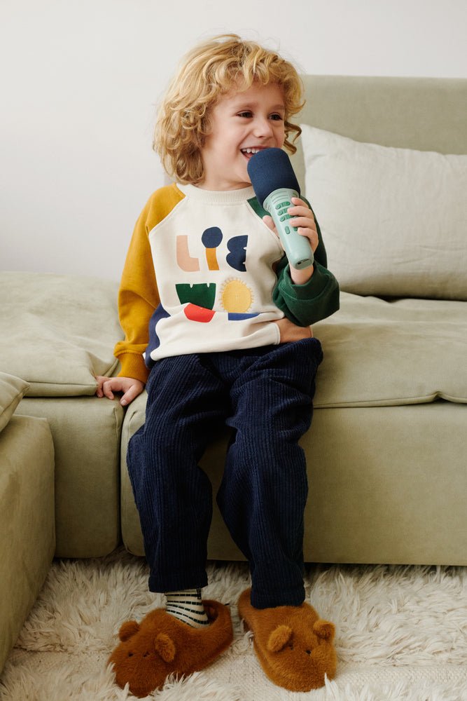 Nechte malé hvězdy zazářit s karaoke mikrofonem v jedinečném designu Liewood. Mikrofon propojíte prostřednictvím bluetooth se svým telefonem, nebo jiným zařízením. Pak už stačí jen vybrat skladby k přehrávání. Hlasitost můžete ovládat jak na mikrofonu, tak na připojeném zařízení. Na mikrofonu můžete tlačítkem měnit hlas mezi 10 různými módy. Je také možné propojit dva mikrofony mezi sebou pro zpěv duetů. USB dobíjení. Pro děti od 3 let.