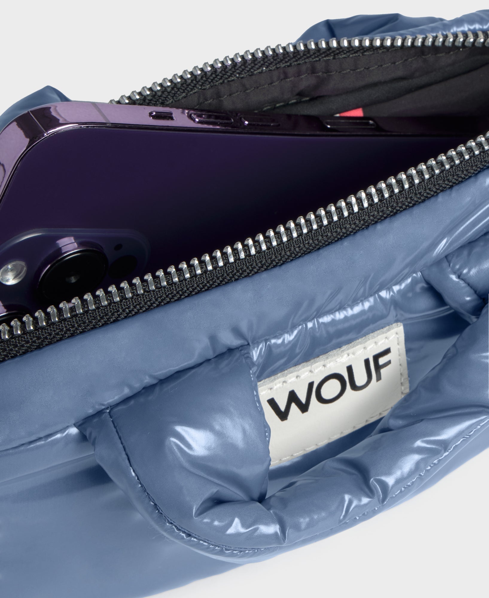 Kabelka "Mini bag" od španělské značky Wouf s minimalistickým, elegantním, lesklým, nadýchaným vzhledem. Můžete ji nosit crossbody, přes rameno i v ruce (popruh se dá odepnout). Navzdory kompaktní velikosti se do ní vejdou všechny nezbytnosti - telefon, klíče, karty i drobná kosmetika. Se zapínáním na zip, nastavitelným a odepínacím popruhem, malou vnitřní kapsičkou a nepromokavým povrchem.