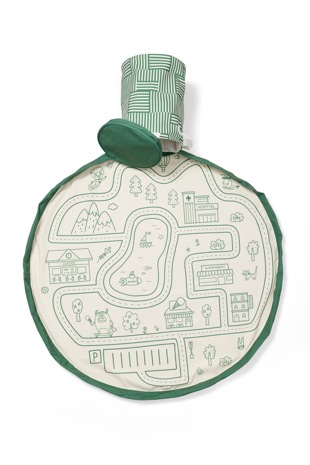 Hrací podložka a vak na hračky 2v1. Chytré řešení do vaší domácnosti od belgické značky Play&Go. Hrací podložka se silnicí a mapou vede děti k samostatné hře. Po jejím skončení můžete podložku i hračky vložit do boxu, který je její součástí. Vše včetně víka je v jednom kuse, protože čím méně částí, tím méně chaosu.
