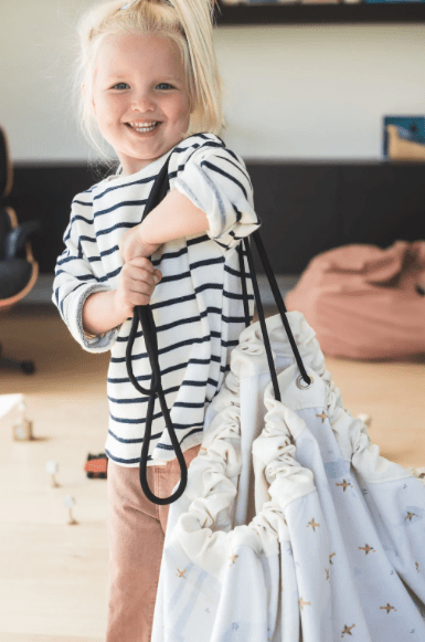 Znáte to? Hračky na zemi, pod postelí i pod stolem? Máme řešení! Úložný vak Play&Go je praktický a navíc je s ním zábava! Slouží jako hrací podložka a zároveň jako úložiště hraček. Rozložený měří v průměru 140 cm, takže je dostatečně velký. Po stažení se dá snadno přenášet.