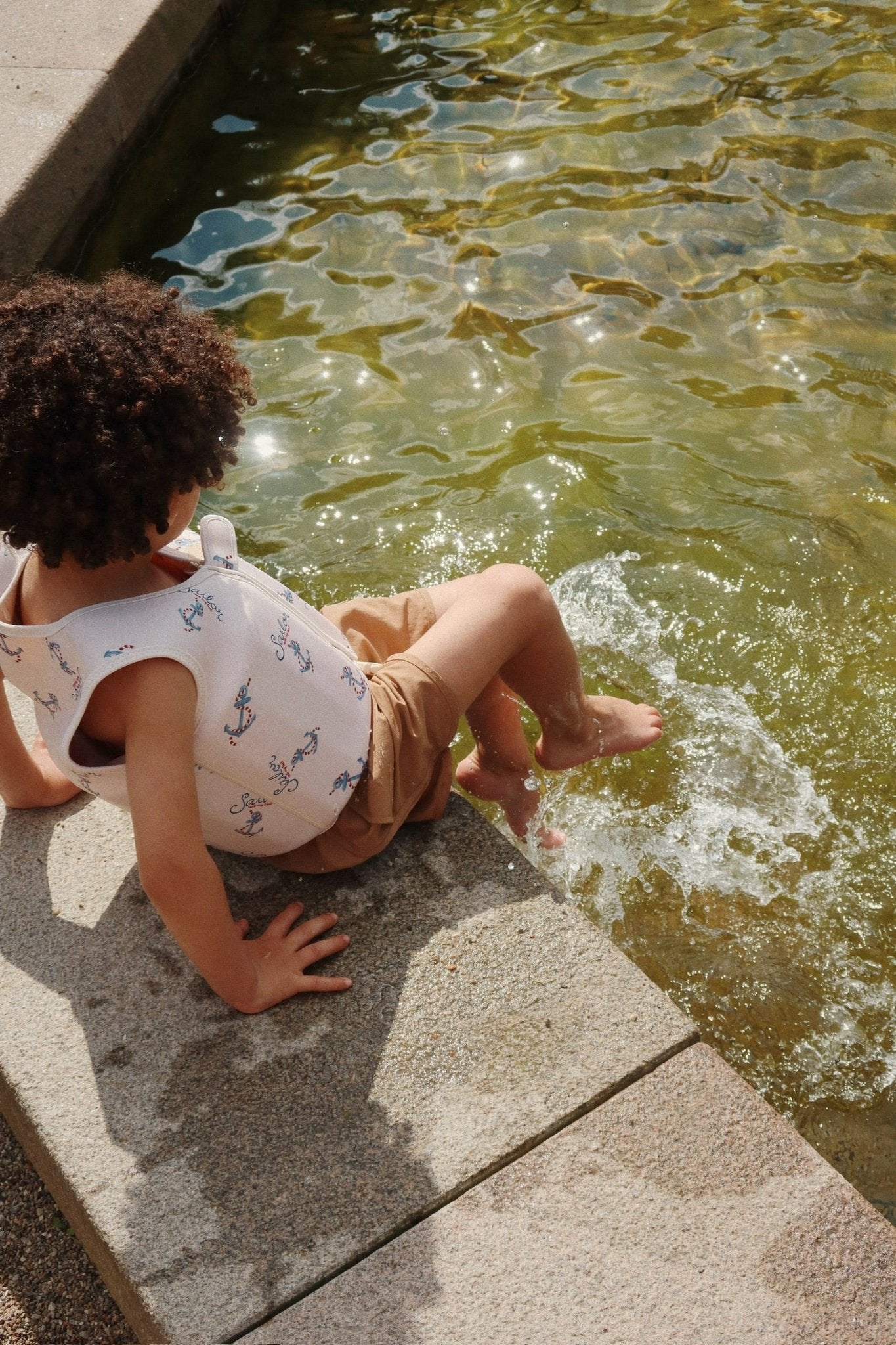 Aby se děti ve vodě cítily jistější. Užijte si den na pláži nebo u bazénu s plovací vestou s originálním potiskem Konges Slojd. Ve třech velikostech pro děti od jednoho roku do šesti let, resp. od 11 do 30 kg. Vesta je na zip, s bezpečnostním páskem se sponou mezi nohama, aby dítě z vesty nevyklouzlo. Plováky uvnitř vesty jsou vyjímatelné. Vyberte správnou velikost vesty dle váhy dítěte.