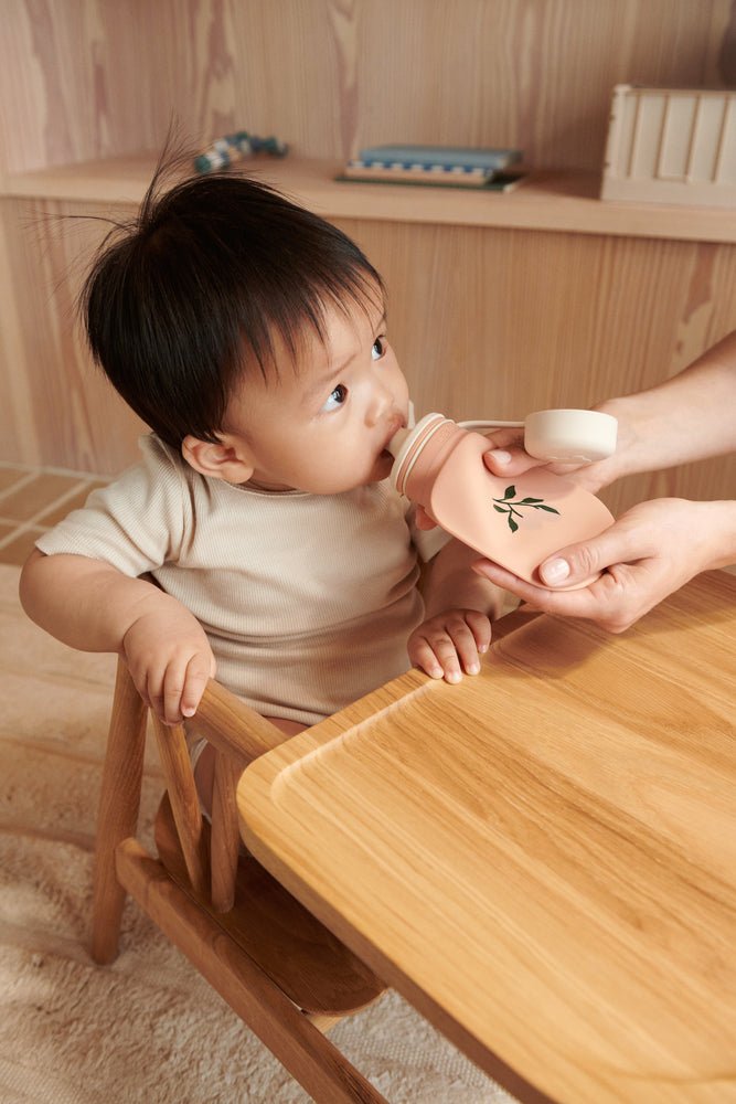 Ekologické, opakovatelně použitelné kapsičky na domácí přesnídávky s sebou. S přídavnou malou lžičkou pro snadnou konzumaci různých druhů přesnídávek, třeba kaše nebo pyré. Kapsičky se dětem dobře drží, protože jsou právě tak měkké, aby se z nich snadno pilo a jedlo, ale aby se neohýbaly. Dobře těsní.